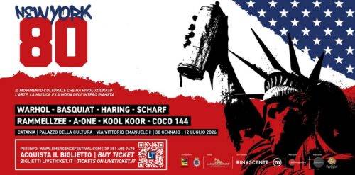 30 gennaio-12 luglio 2026 in mostra NEW YORK 80. Palazzo della cultura, via Vittorio Emanuele II, Catalogo Gangemi editore Il movimento culturale che ha rivoluzionato l’arte, la musica e la moda dell’intero pianeta. Warhol – Basquiat – Haring – Scharf – Rammellzee – A-One – Kool Koor – Coco 144