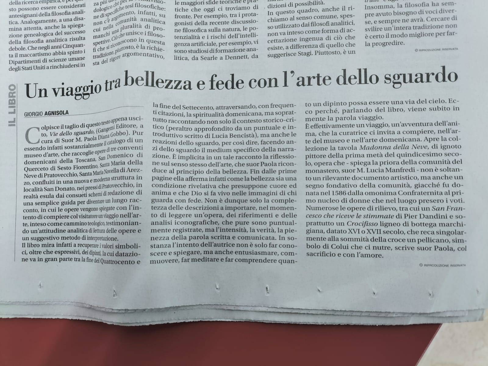 Questo volume è nato dall’intento originario di accompagnare il visitatore nella Sala Espositiva del Monastero Santa Maria della Neve e San Domenico di Pratovecchio (AR). Questa possibilità vuole ora essere resa fruibile anche ad un più ampio pubblico, prendendo per mano il lettore e facendogli riscoprire la bellezza del saper guardare con “altri occhi”. Si tratta di un percorso attraverso le opere di tre antichi monasteri: San Domenico di Sesto Fiorentino, Santa Maria Novella di Arezzo e Santa Maria della Neve di Pratovecchio. È un modo per ritrovare la nostra capacità di vedere nel profondo, riscoprendo il valore del simbolo: un cammino che non si ferma alla semplice conoscenza esteriore ma ci riporta dentro l’opera, al cuore del suo messaggio. Un cammino tra arte e fede, che si apre a nuove vie dello sguardo, con particolare attenzione riservata alla spiritualità domenicana.